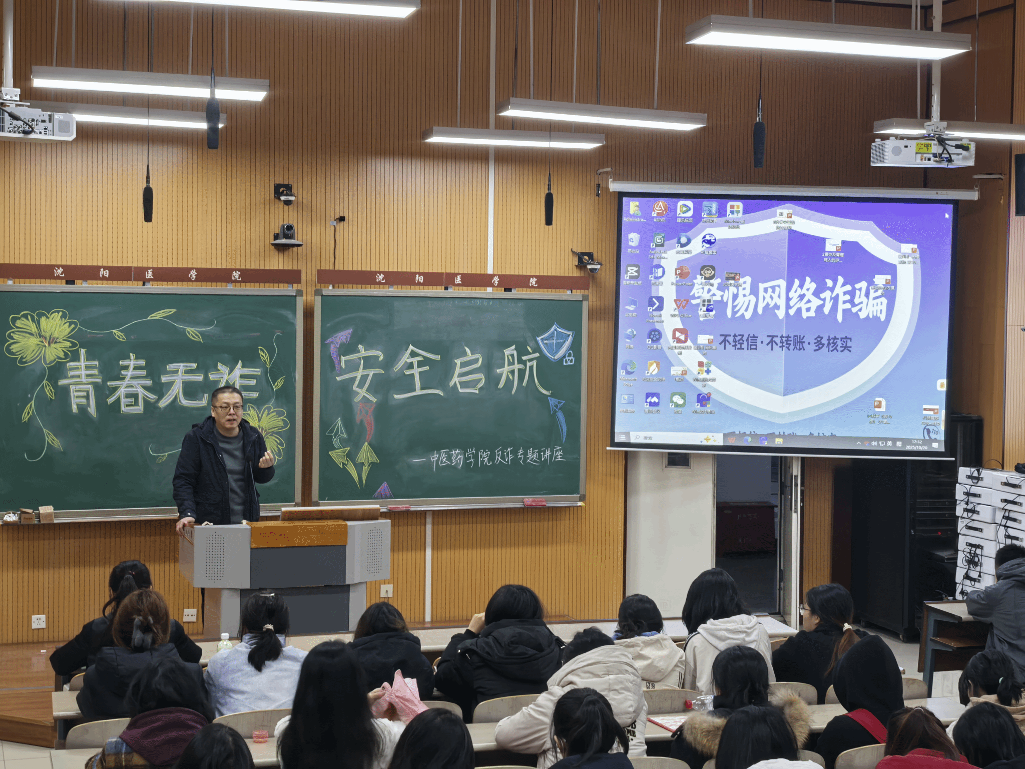 为全面提高学生的反诈认知水平,增强学生的防范意识,2025年10月20日,中医药学院与保卫处联合举办反诈专题活动,特别邀请沈阳市公安局于洪分局新型犯罪侦查作战大队陈佳瑶警官为学院全体在校生开展反诈专题讲座。