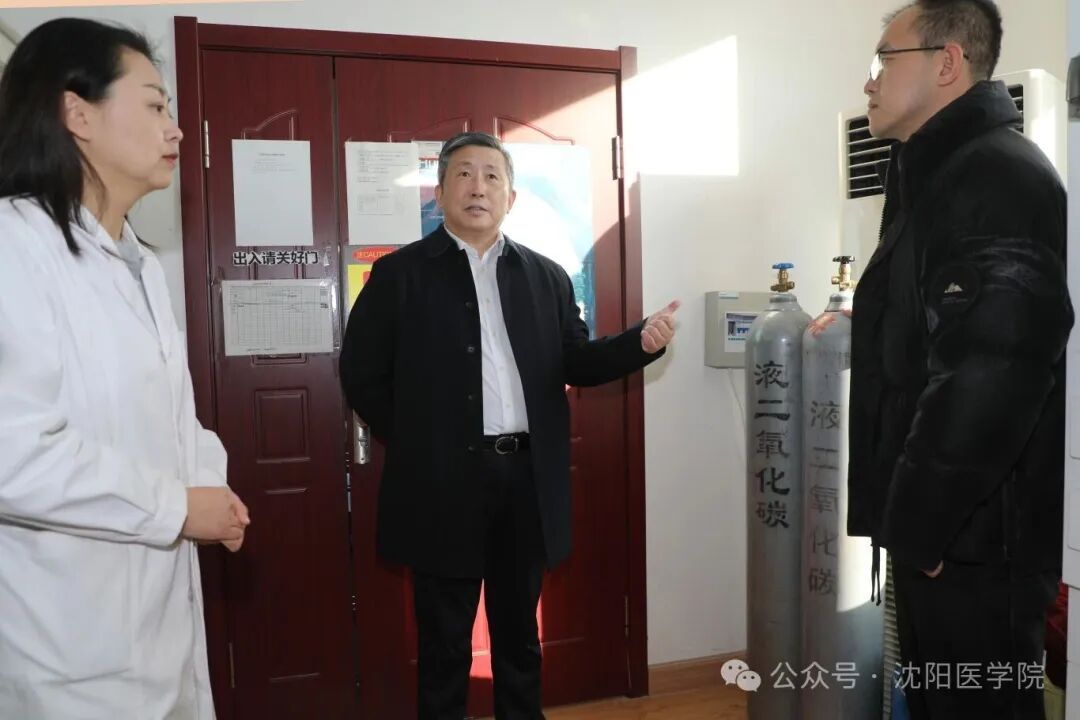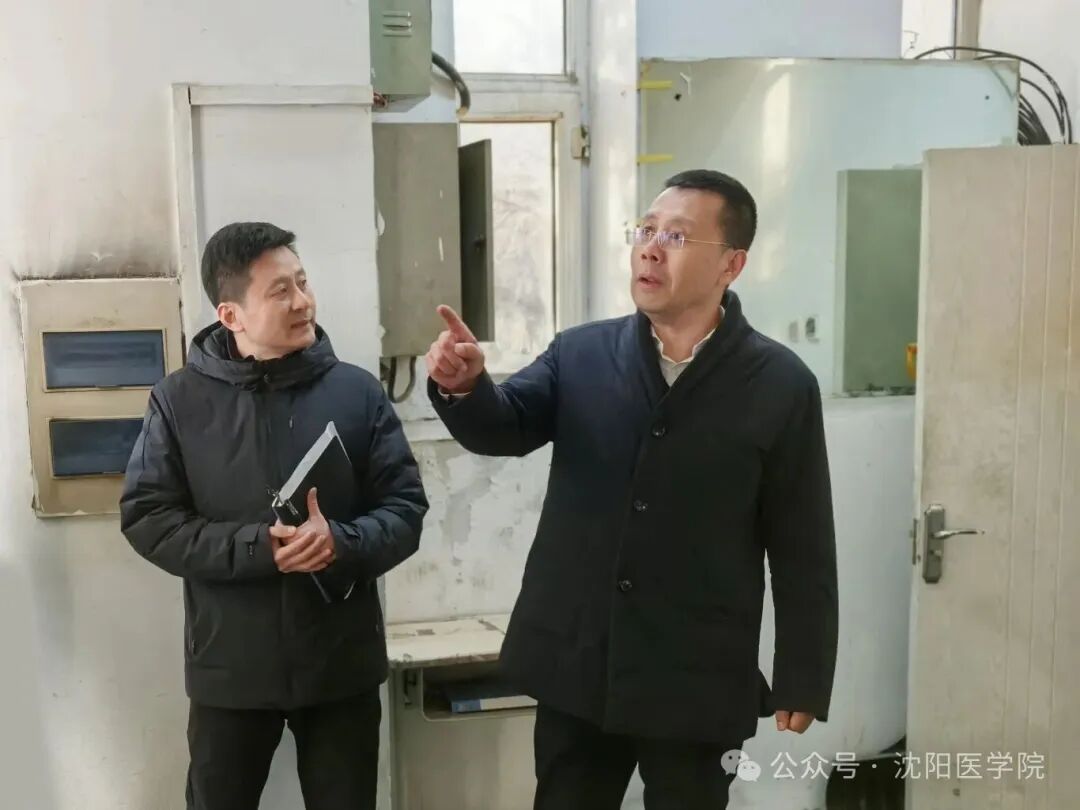 在第一教学楼7楼仓库,任甫重点关注无人管理问题,明确要求划定责任主体,杜绝校园内出现安全管理盲区;检查图书馆时,他不仅核查阅览区、藏书区消防器材配置情况,还特别提出要加强校园闲置区域常态化巡查与管理,严防杂物堆积引发火灾等安全事故。在基础医学院、公共卫生学院、附属卫生学校、实验动物中心、护理学院、口腔医学院、档案室、大学生心理健康中心、公共外国语学院等单位,任甫深入办公室、教研室、实验室等处检查,强调全体教职员工必须提高安全责任意识,严禁违规用电;针对实验室安全,要强化管理,实验仪器设备、压力容器、实验试剂需明确专人负责,规范使用、储存及登记流程,同时持续做好消防设施设备巡视巡查,加强重点岗位人员安全培训与应急演练;此外,任甫还带队检查了废弃物处理厂、水源地、法医司法鉴定所等关键场所。结合这些场所的设备特性与安全要求,他要求相关单位细化电器管理制度,明确专人定期检查设备,从源头杜绝隐患,落实各环节安全责任。