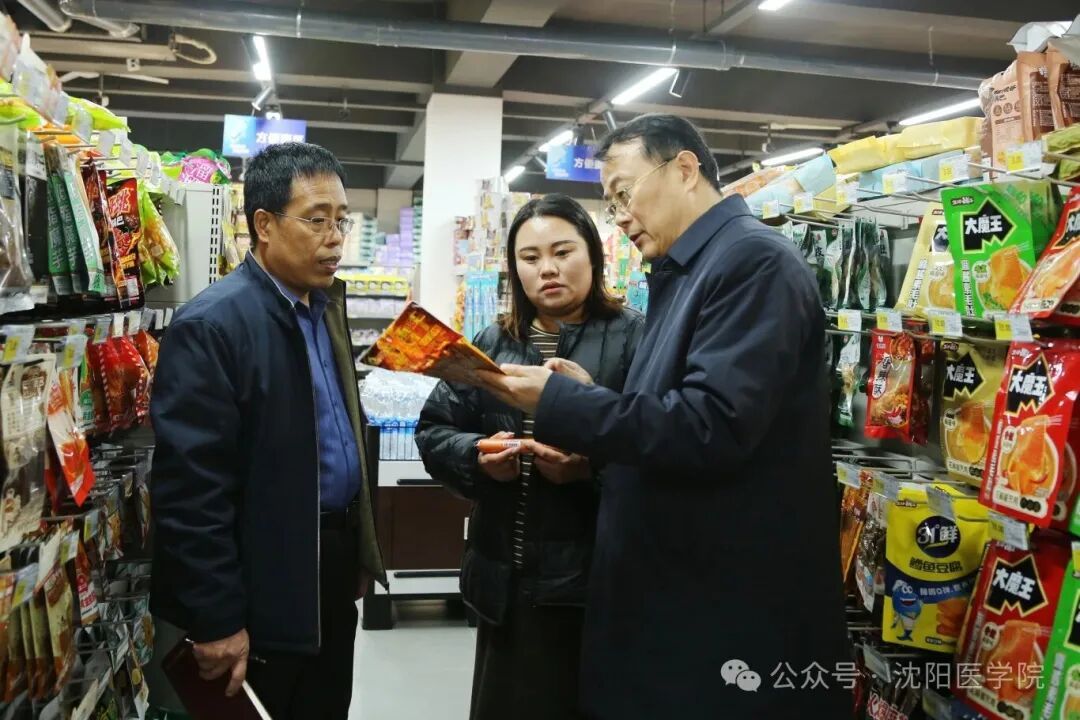 吴玉东重点巡查校园生活区。他指出,生活区是保障学生学习生活的核心区域,安全检查必须细致入微、落到实处,始终将学生安全放在首位。在校园购物中心,他仔细核查商品售价、生产日期及保质期。在物流中心,他叮嘱后勤工作人员,物流中心作为防火重点部位,需高度重视用火用电安全,及时清理废弃物品,避免堆积引发火灾隐患。在学生食堂,他实地检查售卖档口与餐具消毒柜,要求食堂工作人员保障食材新鲜,严格把控食材采购、贮存、加工、销售全流程,做好餐具卫生消毒等细节工作。在学生宿舍,他关切询问学生住宿条件与室内温度,强调要加强宿舍违规用电管理,充分发挥学生工作队伍作用,切实保障学生住宿安全。在科学实验中心,他详细了解实验室使用登记情况,仔细查看设备使用登记簿,要求加强实验室管理人员与使用人员系统培训,并就实验仪器设备、试剂材料规范摆放与有序管理提出明确整改意见。