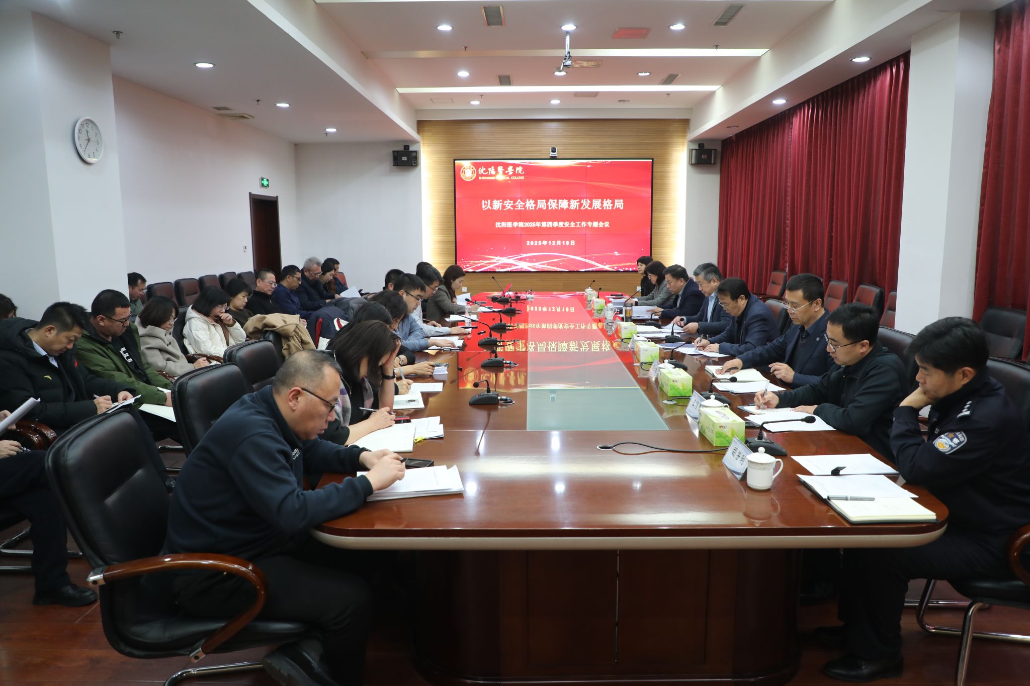 会议期间,保卫处处长刘旭作2025年校园安全工作总结,全面梳理全年安全工作开展情况、成效及存在的问题。副处长王腾龙宣读《沈阳医学院校园安全专项工作组实施方案》,明确专项工作的目标任务、责任分工及实施步骤。